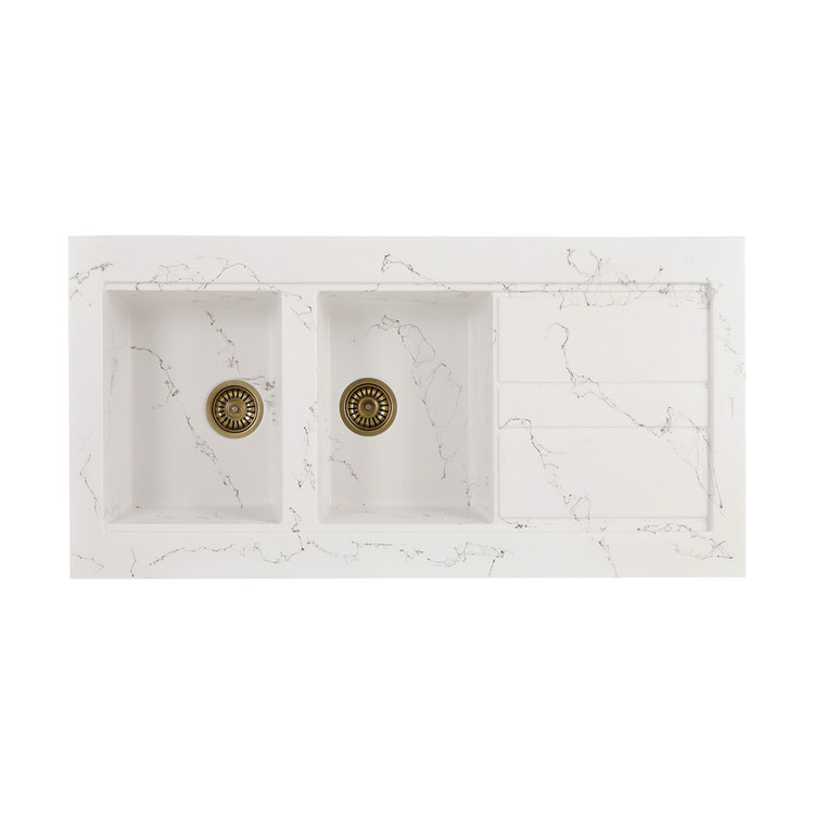 بدنه این سینک از ترکیب ۸۰ درصد پودر سنگ طبیعی و ۲۰ درصد رزین درجهیک ساخته شده؛ همین موضوع باعث شده تا هم مقاوم باشه و هم ظاهر سنگی زیبایی داشته باشه. سطح سینک مات و آنتیباکتریاله، و بهخاطر جنسش، در برابر خط و خش، حرارت و حتی مواد شوینده قوی بسیار مقاومه.