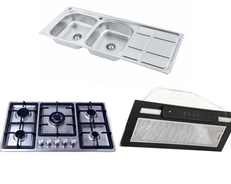 Modern Built-in Kitchen Set – Range Hood, Sink, and Gas Hob